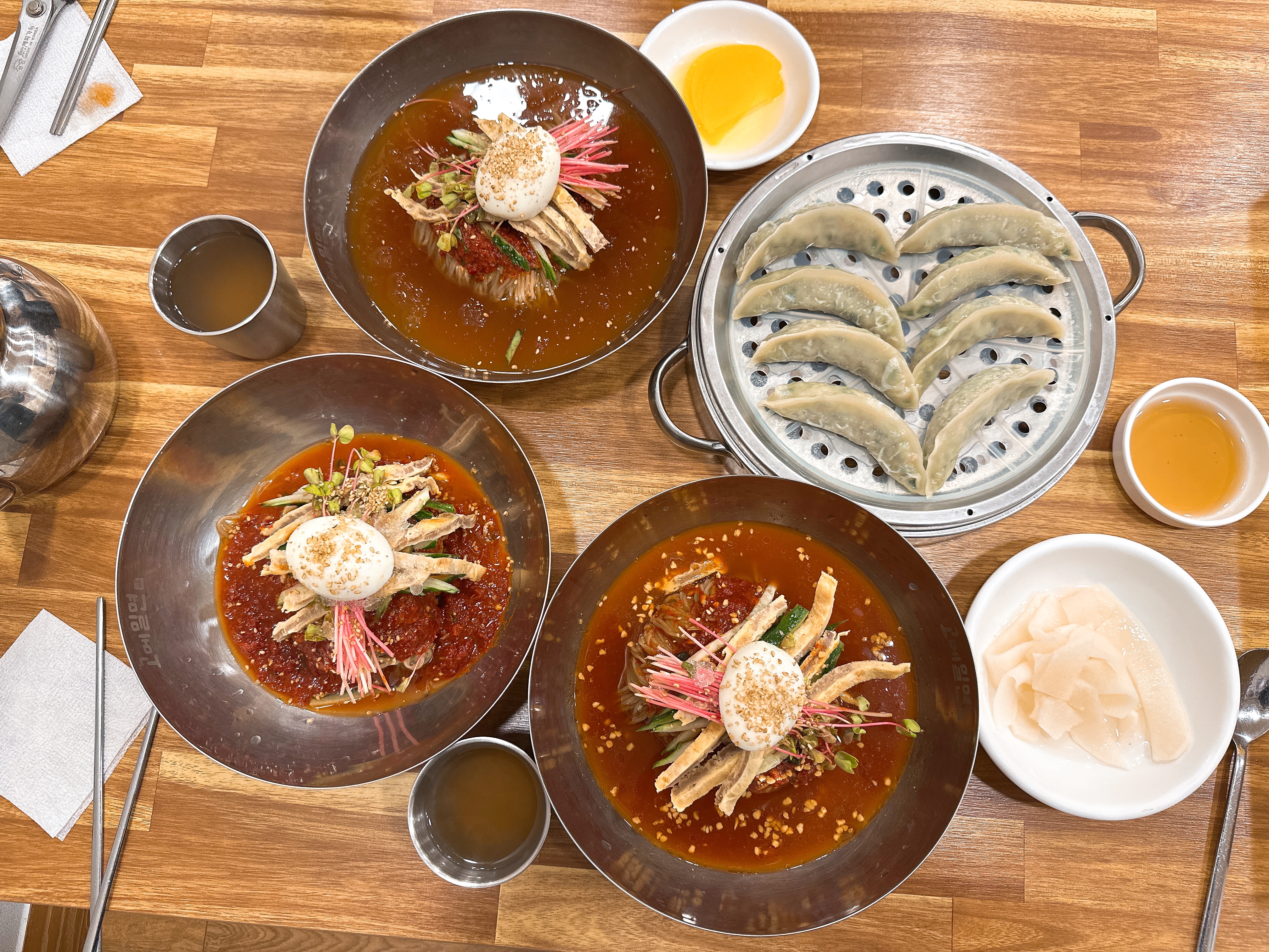 육전물비빔면은 살얼음 동동 띄운 육수를 함께 즐길 수 있는 메뉴입니다. 빨간 양념장과 육전 고명이 푸짐하게 올라간 밀면에 시원한 육수를 부어주면, 군침이 돌게 만드는 비주얼이었습니다. 매콤한 맛 뒤에 은은한 감칠맛과 고소한 풍미가 입안을 감싸며 황홀한 맛을 선사했습니다.